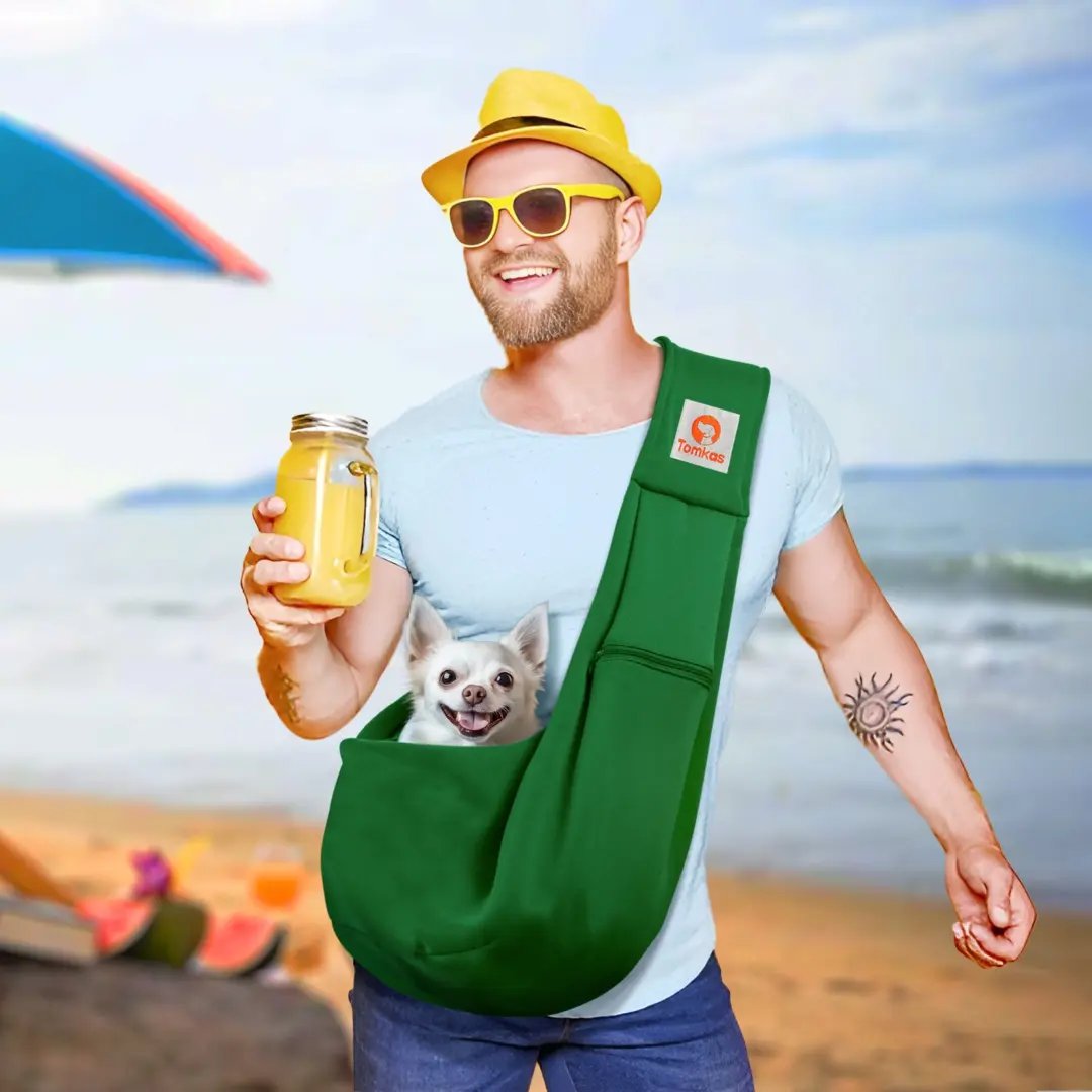 Tomkas Small Dog Sling Carrier – Zipper Pocket & Adjustable Strap – for 3-10 lbs Pets(Black)