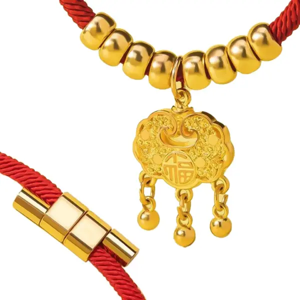 $29.99Original price was: $29.99.$14.99Current price is: $14.99.- Lucky Charm Centerpiece: Features an ornate gold pendant engraved with the traditional “福” (fortune) character, symbolizing good luck and blessings.
